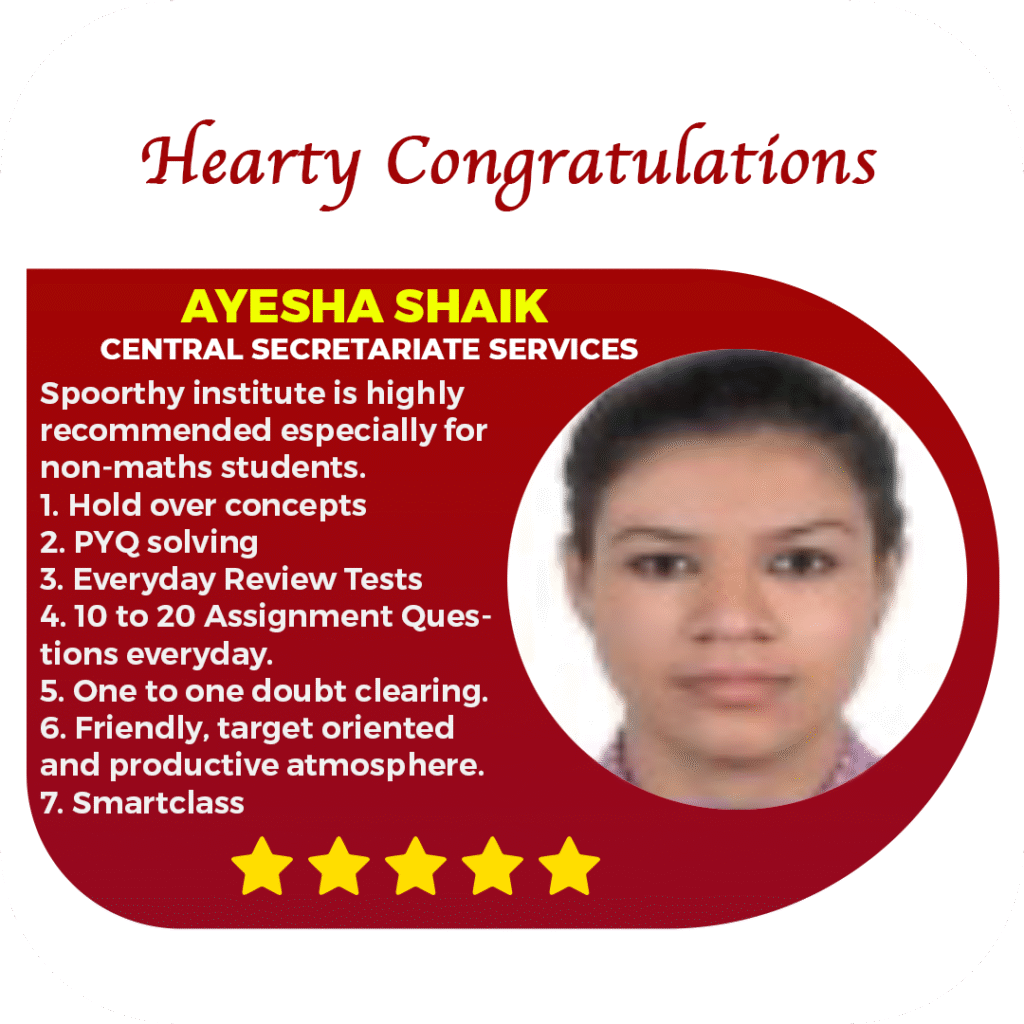 The success stories of our students across IAS, IPS, Audit, and Central Services stand as a testament to our commitment. At THE SPOORTHY IAS ACADEMY, we don’t just teach CSAT — we prepare you to succeed.